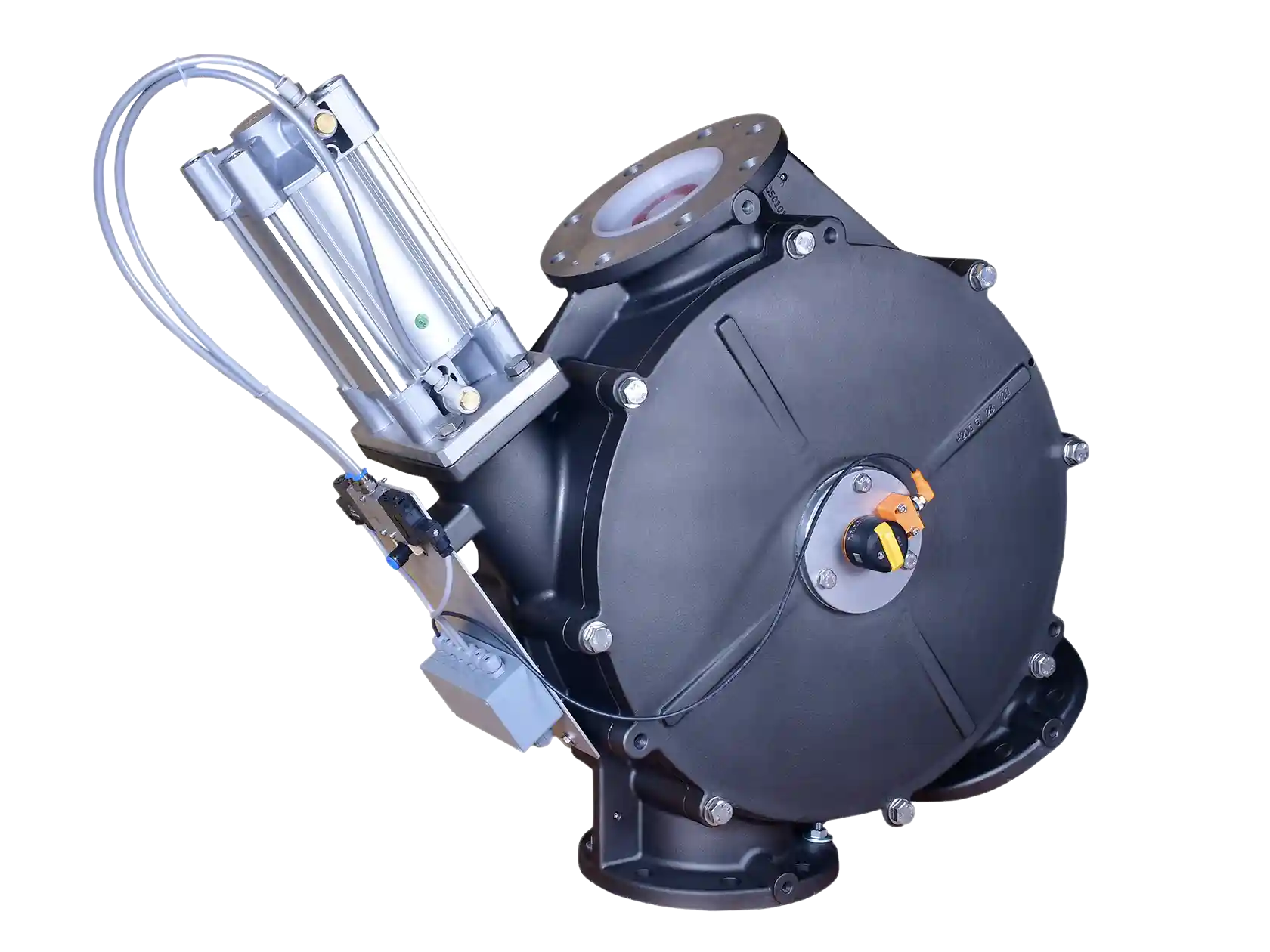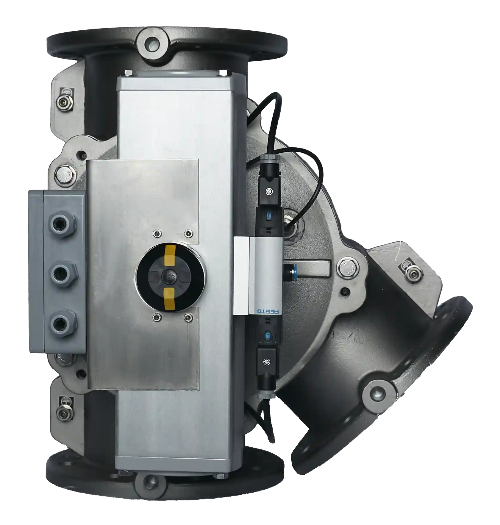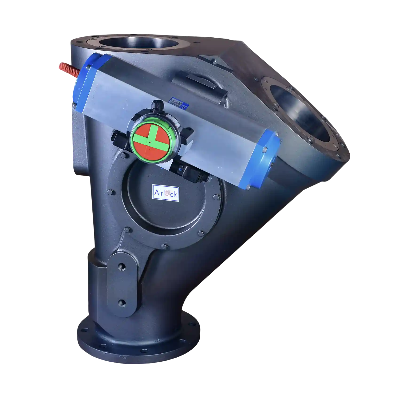 バルク固形物の空気輸送において、バルクストレージビン、スケールホッパー、計量ホッパー、プロセスホッパーなどへの流れを制御 内部パドルの回転によりストレートポジションと分岐ポジションを選択 |